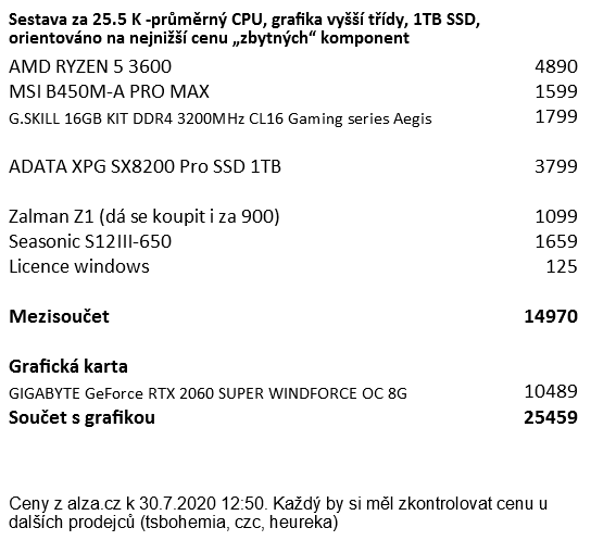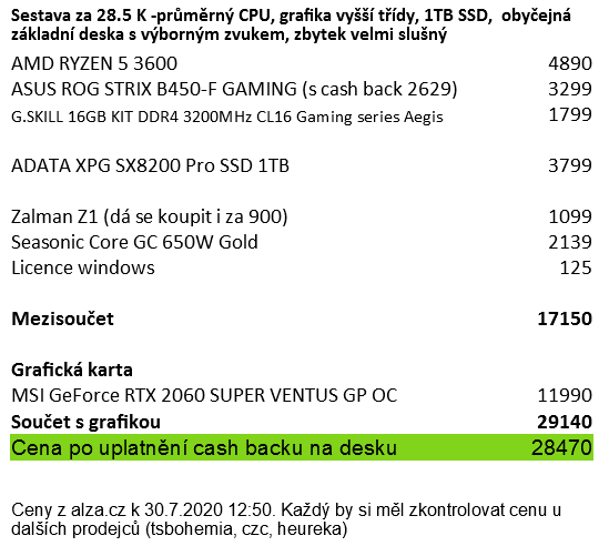Udělal sem návrh sestavy za 28.5 K s mnohem lepší grafikou 2060 Super (grafika za 12, srovnej s 1660 Super za 6)