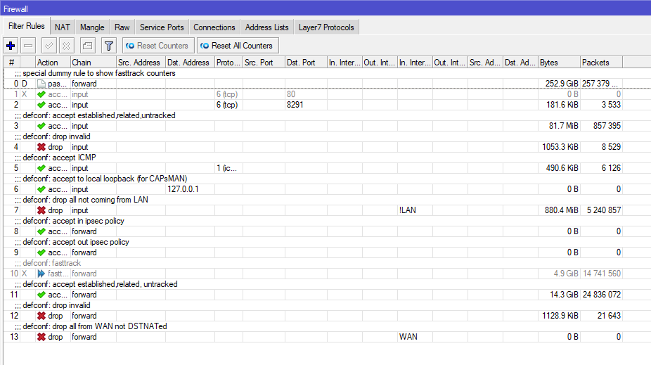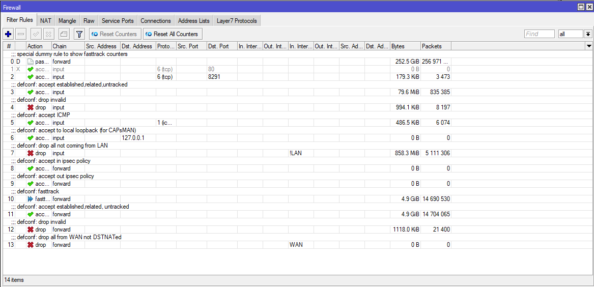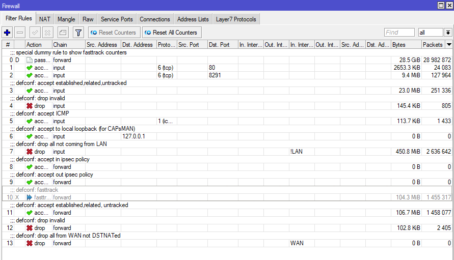 Ukaz tu 146 ako mas nastavenu. Ten MT je dufam branou a tie packety cez neho naozaj lezu...?!