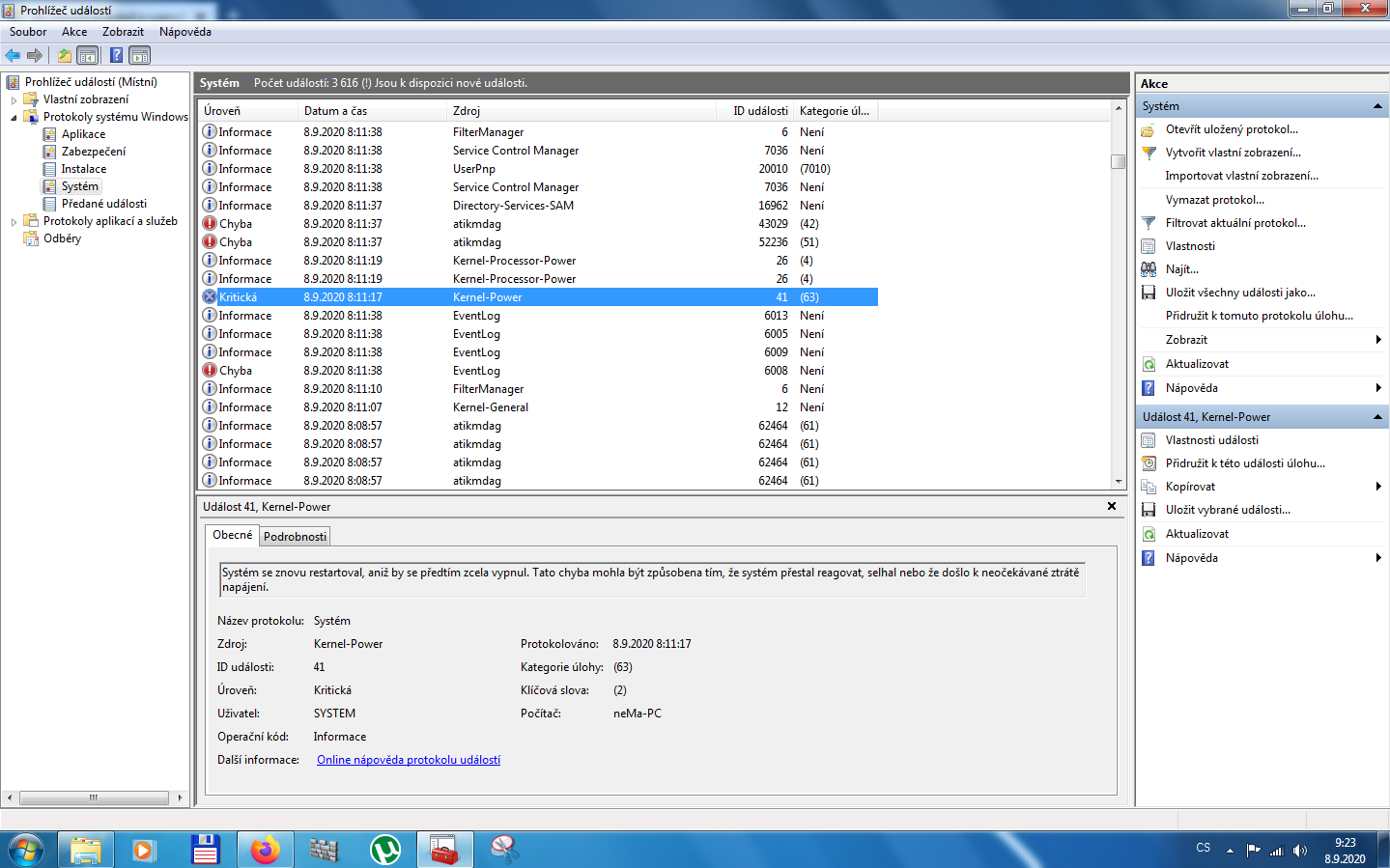 Díky, takže dle prohlížeče událostí by to mohlo být zdrojem?