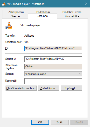 1.způsob s odesláním do vlc. zkoušel jsem to, zástupce obsahuje pouze odkaz na program, bez parametru "%1"