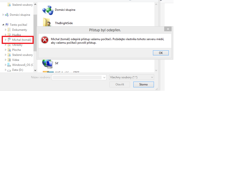 Myslim ze tady jde o nedorozumeni, "Michal" je nejaky media server v stejne siti, ke kteremu nemate pristup/prava - ne neco u vas lokalne, ve vasem pocitaci.