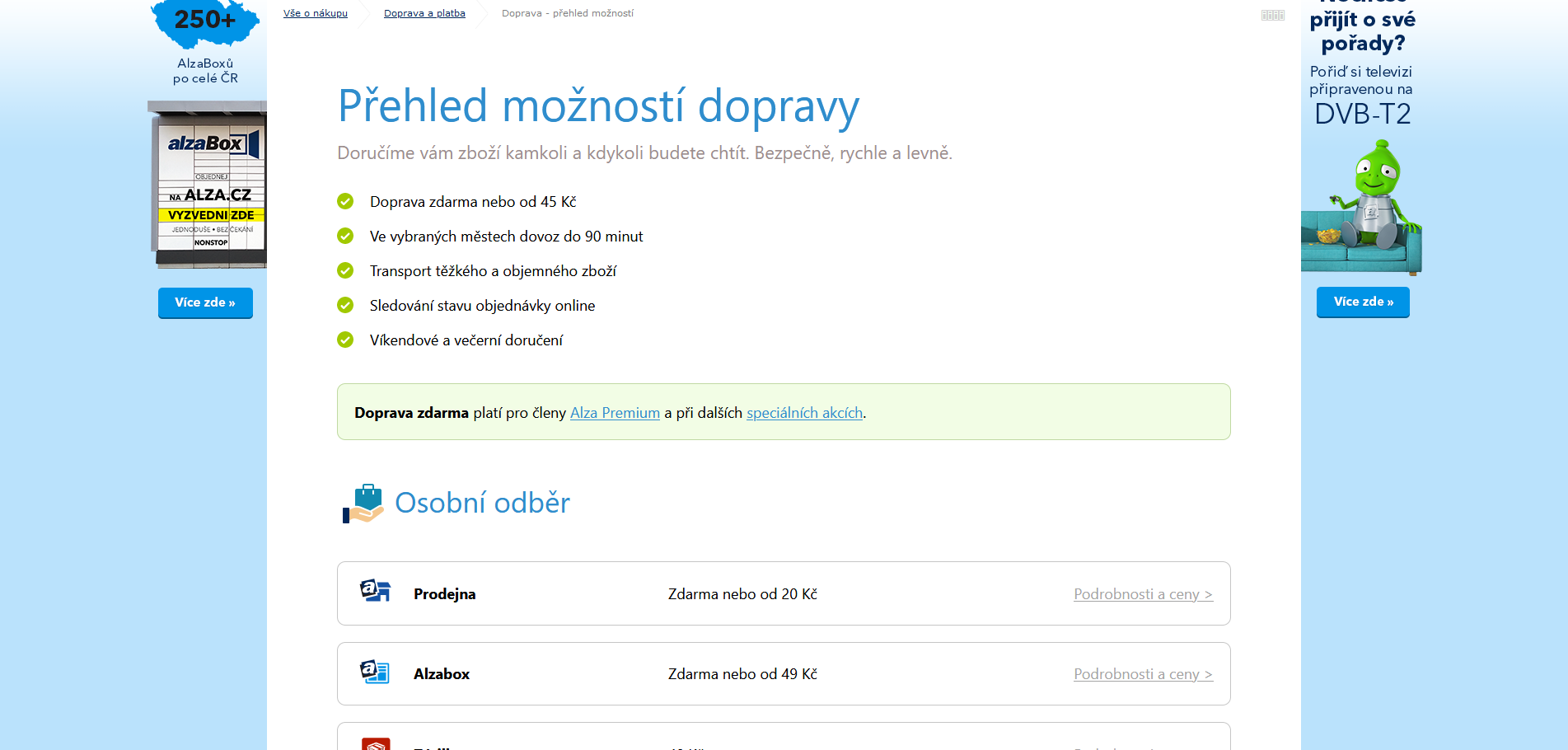 alza.cz osobní odběr "zdarma nebo od 45 Kč" - za jaké podmínky zdarma