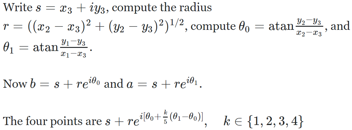 Stačí jenom spočítat ty čtyři úhly, čili postupně exponenty v posledním vzorečku (The four points are ...) bez i.