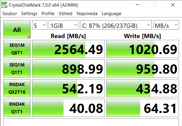 Disk tam máš překvapivě dobrý dle rychlosti - to 970 evo plus je "papírově"* o půlku rychlejší ale tak se to nechová ani s diskem papírově 5x pomalejším (SATA SSD).