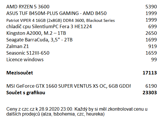 S lepším procesorem a lepší grafikou to vyjde na 23. Ještě by byla možnost snížit to na 21500 tím že se tam místo 3600 dá 2600.