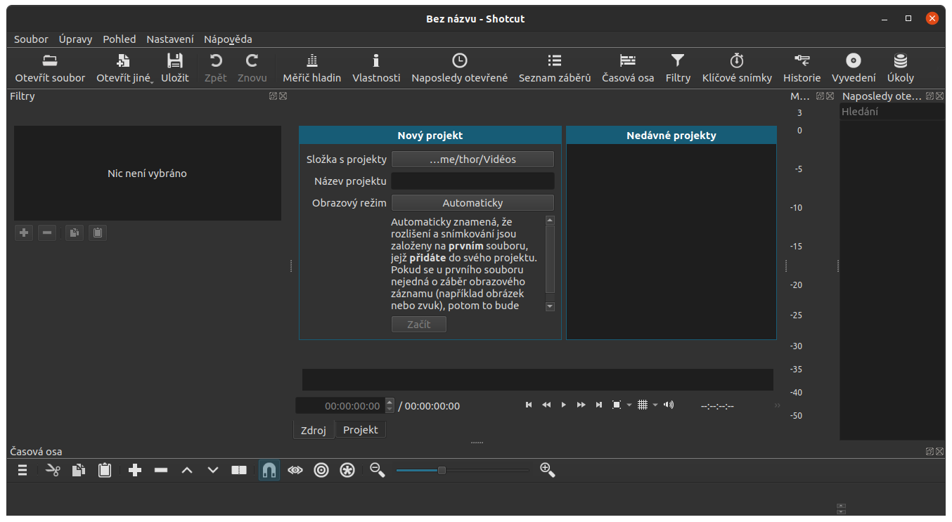Shotcut jsem pro tuto příležitost nainstaloval a je také v češtině takže ano, jsou v češtině.