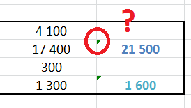 Kliknite ľavým tlačidlom myši na tu bunku so zeleným trojuholníkom a potom potiahnite myš nad ten žltý výkričník a chvíľku počkajte, nakoniec kliknite na ten žltý výkričník.