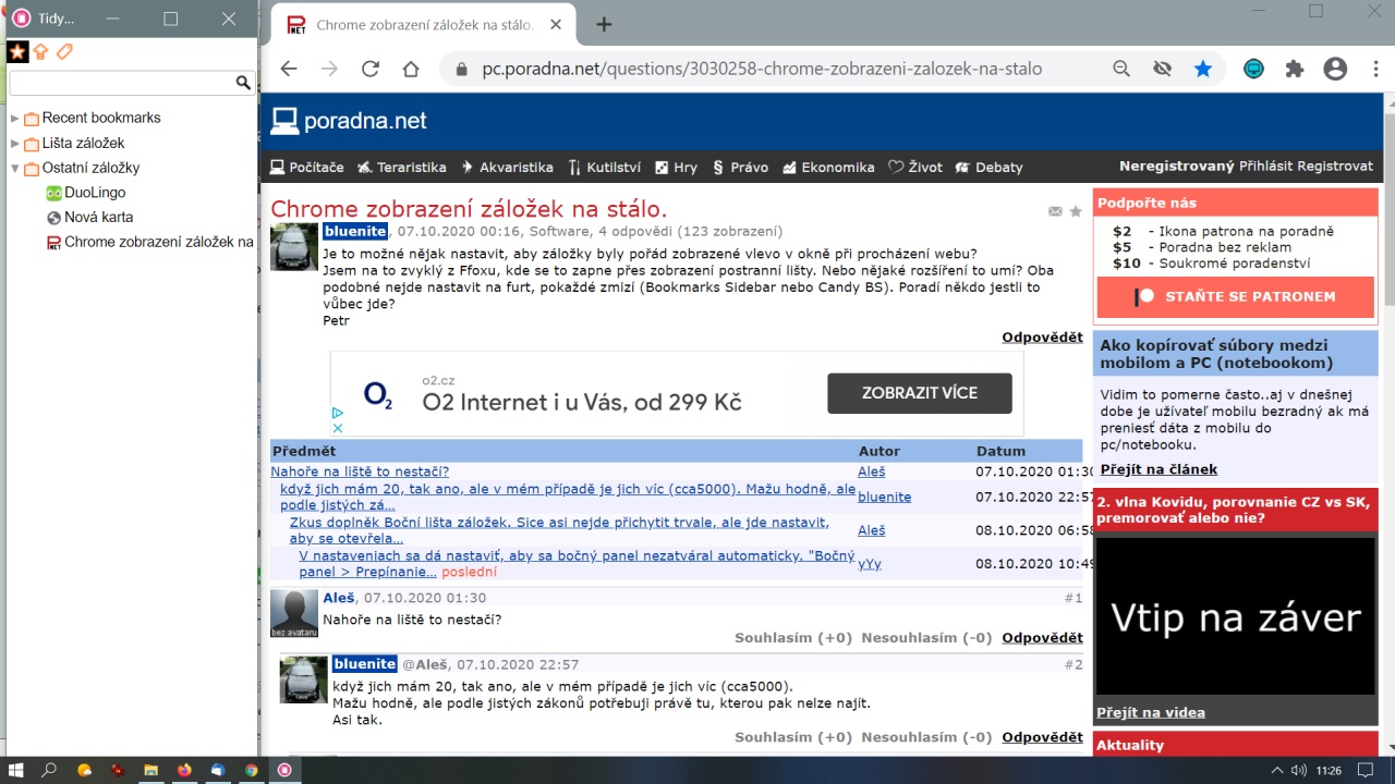 Tidy Sidebar jsi zkoušel? Vytváří to samostatný boční panel, dá se spouštět současně s prohlížečem n…