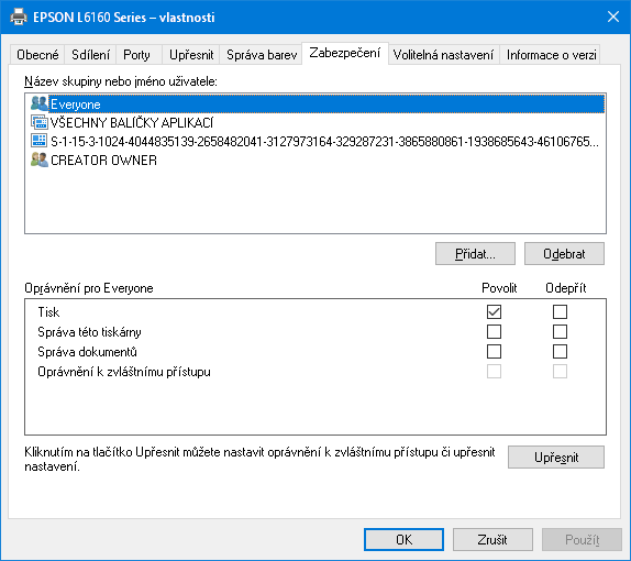 Jj na tohle jsem koukal, akorát při nastavení oprávnění "odepřít" pro správu této tiskarny, se autom…