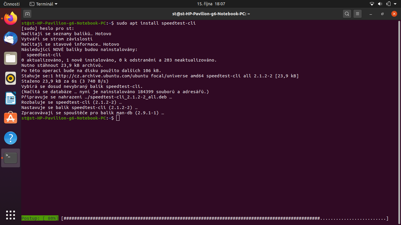 Musis jeste napsat speedtest-cli aby se spustil test.