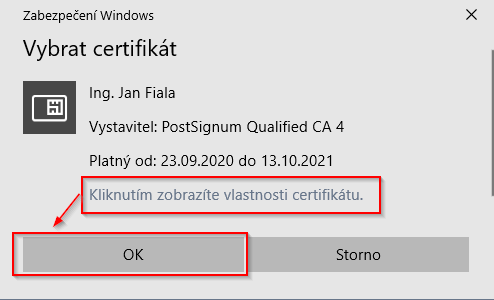 Po tomto úkonu začne certifikát v Outlook fungovat.