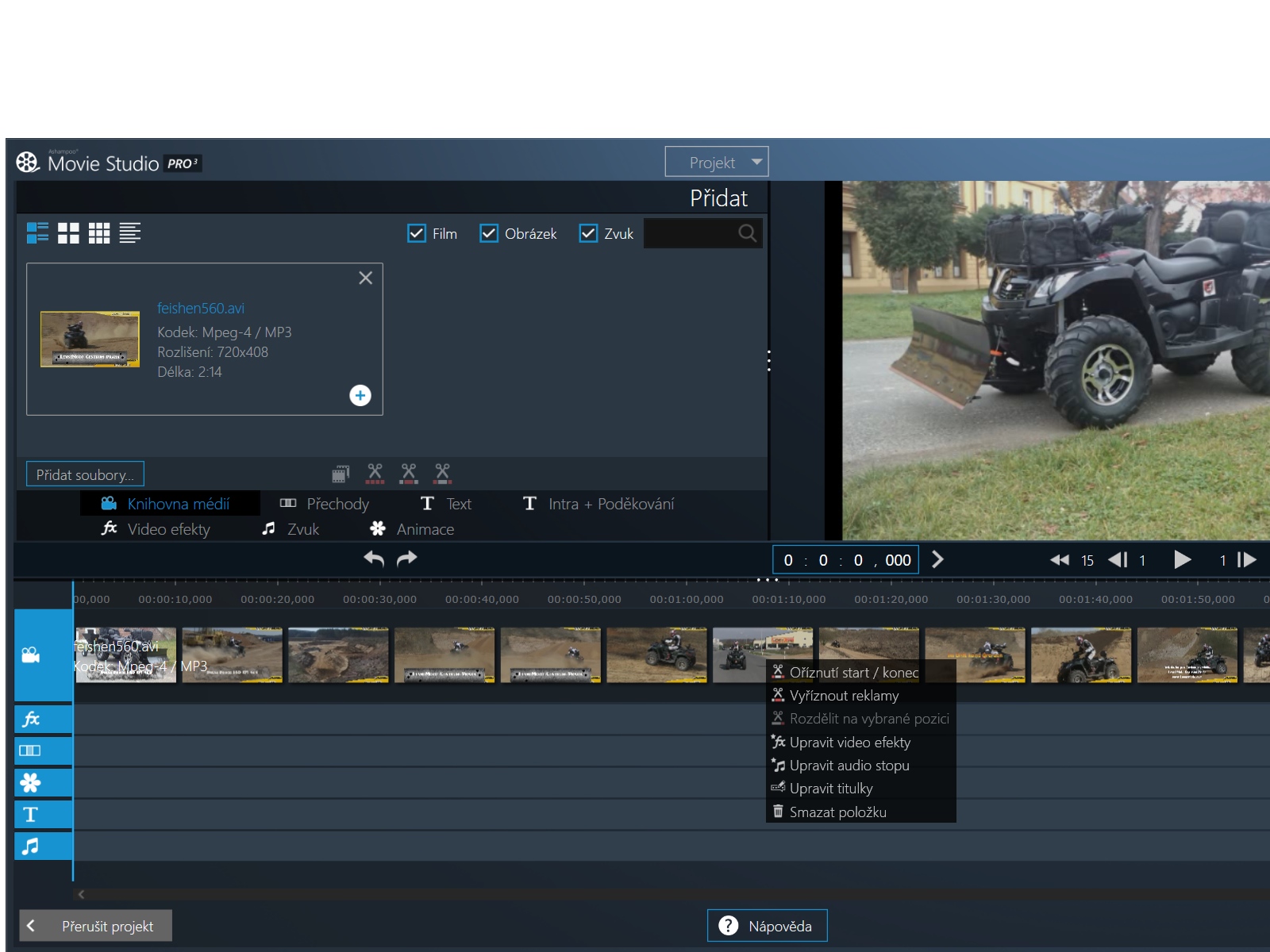 vložení fotografie do sekvence videa v MOVIE Studio pro 3