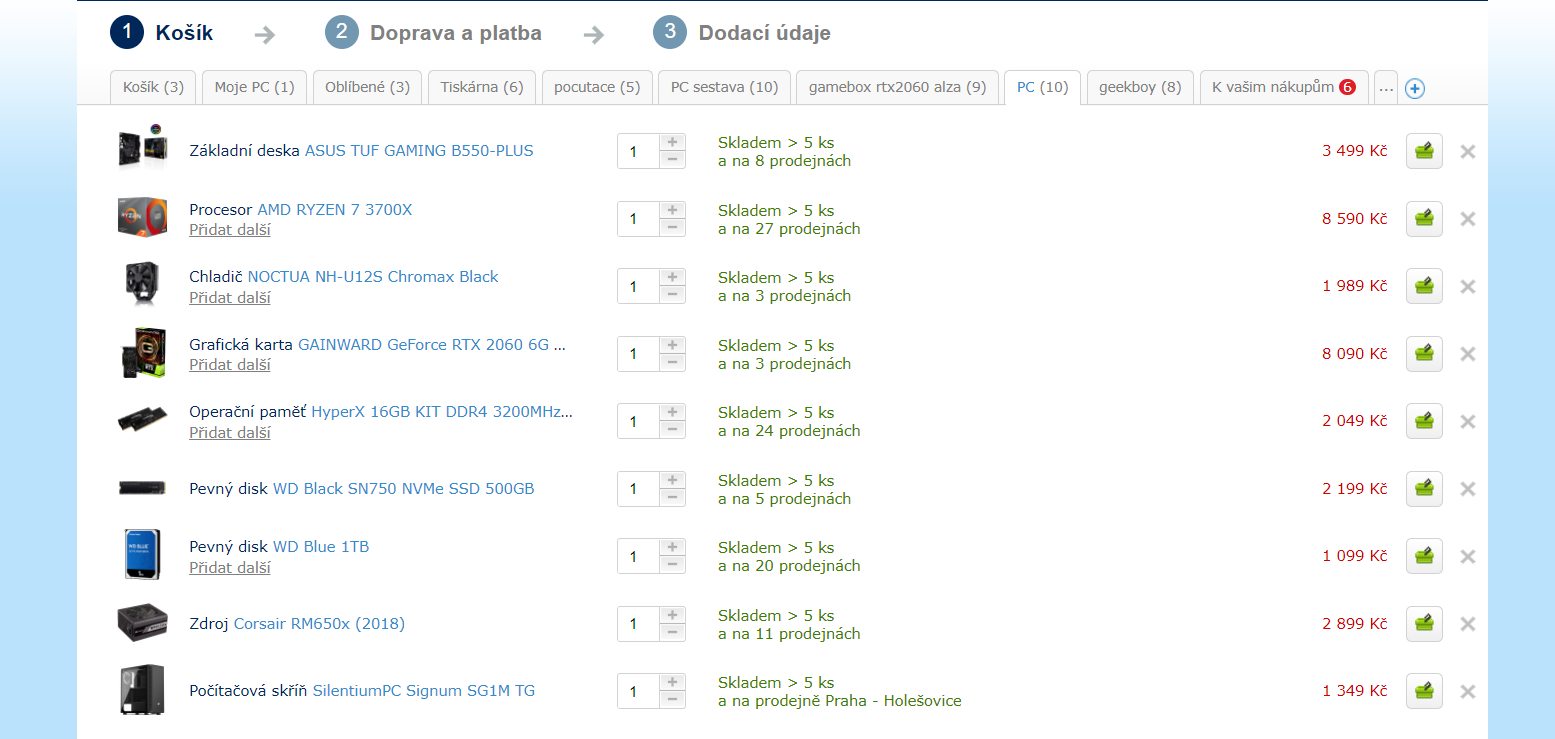 Ryzen https://www.czc.cz/amd-ryzen-5-3600/264414/produkt chladič https://www.czc.cz/arctic-freezer-34/253607/produkt RAM https://www.czc.cz/patriot-viper-steel-16gb-2x8gb-ddr4-3600/277748/produkt SSD https://www.czc.cz/kingston-a2000-m-2-1tb/265877/produkt