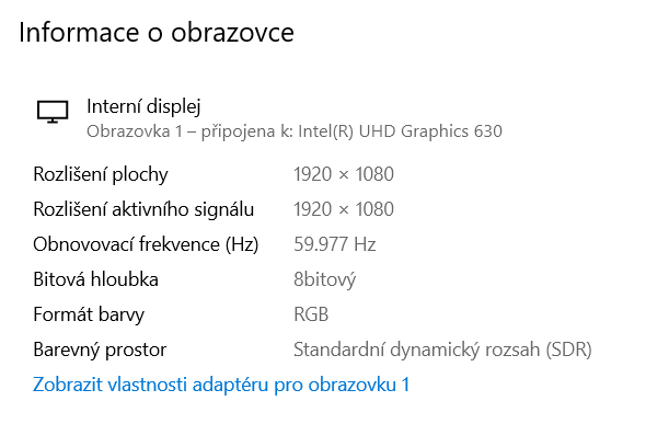 Notebook je napájený ze sítě a displej je furt nastavený na UHD 630