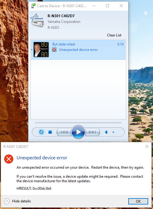 Díky za info, zatím nejde ani ten stream z WMP. Háže tuto chybu. Ale o WMP až tak nejde, ten nahradím přehráním ze síťového disku.
