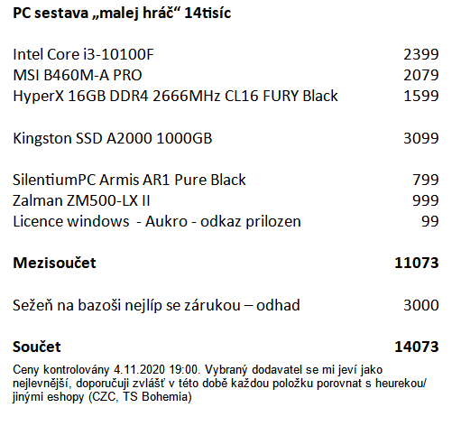 Základ který výkonem překoná nabízené sestavy vyjde na 11tisíc včetně rychlého nvme o 1TB /to nemá ž…