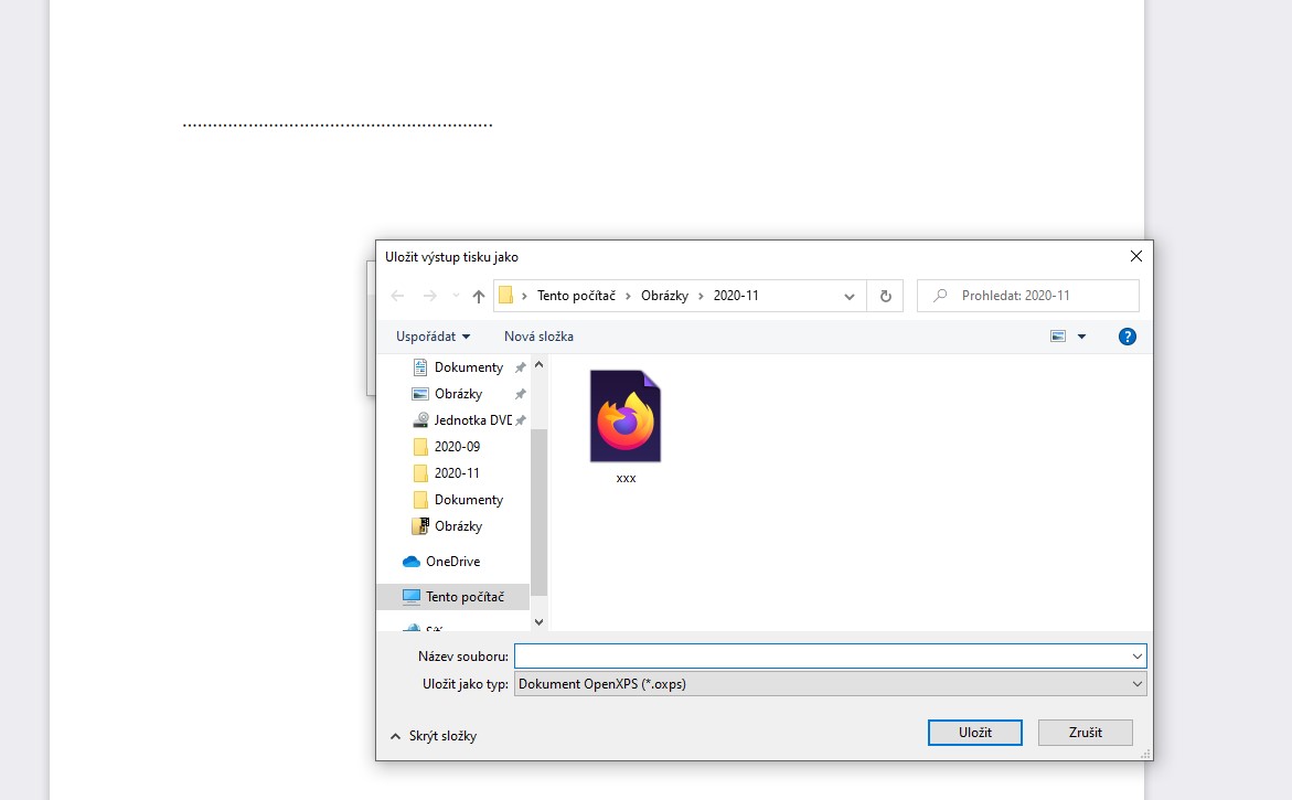 Nemáš náhodou nastavenou výchozí tiskárnu Microsoft XPS Document Writer?