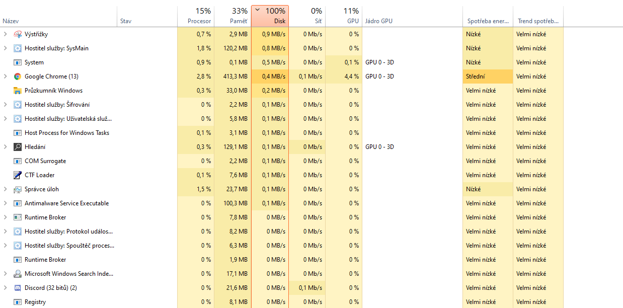 Na tom obrazku jd eu chrome videt jak vyuziti CPU, HDD tak i GPU kde pravdepodobne pujde o nejakou stranku s hodne tezkym obsahem, sriptem ..