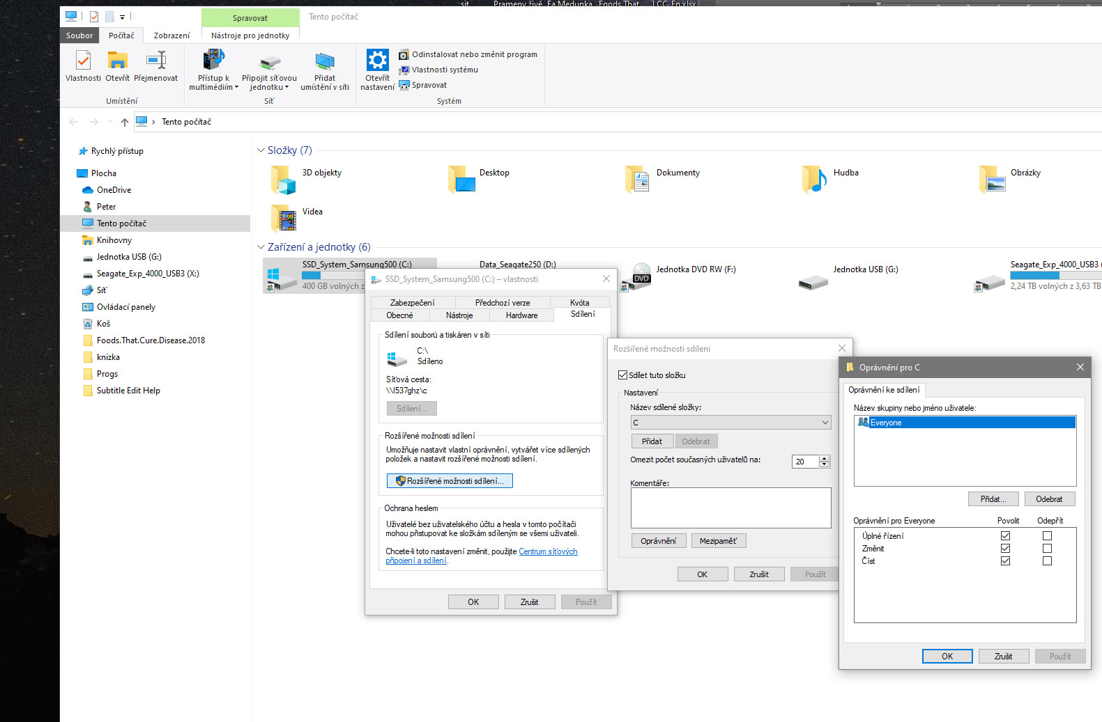 Potřebuji poradit s propojením pc+nbook pro přenos dat v domácí síti. Nb je připojený skrze wifi, pc kabelem do routeru vdsl. Jak to vyřešit, abych mohl s obou zařízení dosáhnout na všechna data vzájemně? U obou jsem admin, nasdílel jsem komplet všechno co šlo, udělil oprávnění. Ani u jednoho to bohužel nejde tak jak chci, resp. nijak. Viz přílohy. Umí někdo pomoci, jak na to? Dík za případné rady, nebo nasměrování na nějaký návod s postupem, který nikde nomohu najít.