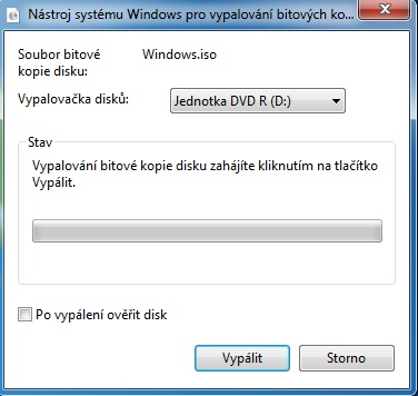 "nástroj systemu windows pro vypalování bitových kopií disku"