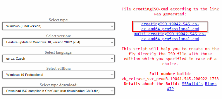 Pak budes dlouho cekat, stahnou se jednotlive soubory a provede se sestaveni instalacniho media a nakonec se vytvori ISO soubor.