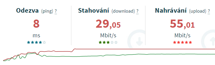 Z obrázku nejde nic poznat. Aby byl upload rychlejší než download není zrovna typické. Třeba jsi limitován providerem? To je měřené přes wifi nebo přes kabel? Jiné hodnoty naměříš večer a jiné ráno.