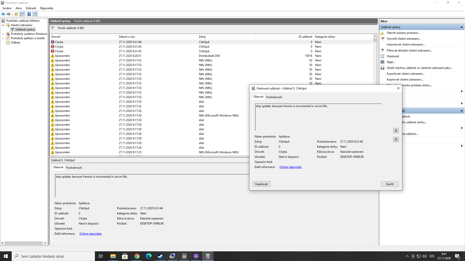 Co to je za SSD? Značka, typ? Že by Crucial? Připojení SATA nebo M2? V Prohlížeči událostí žádné ch…
