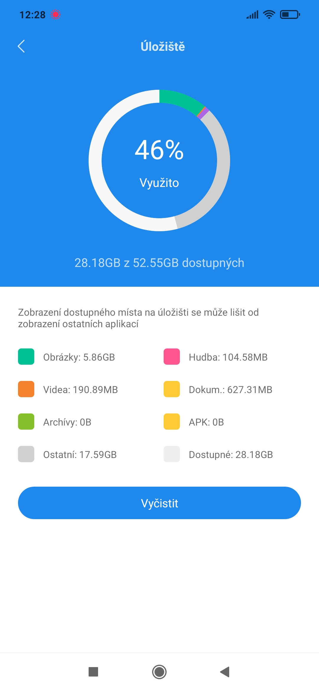 Na debilnim Androidu se neda verit nicemu. Zrovna jsem predevcirem resil telefon kolegyne od Xiaomi, kde ma vnitrni uloziste 16GB, pricemz k dispozici je 9GB uzivatelskeho prostoru, telefon ji hlasi, ze vnitrni uloziste ma mene nez 1GB volneho mista, coz je nedostatecne pro fungovani aktualizaci. Pripojenim k pocitaci a vykopirovanim celeho uzivatelskeho prostoru jsem odhalil, ze tam ma kolegyne nahrano 4GB dat, ale kde je zbylych 5GB netusim. Smaznul jsem 1GB docasnych souboru, takze se problem vyresil, ale furt teda nekde v eteru zmizely 4GB. Priblbly Android.