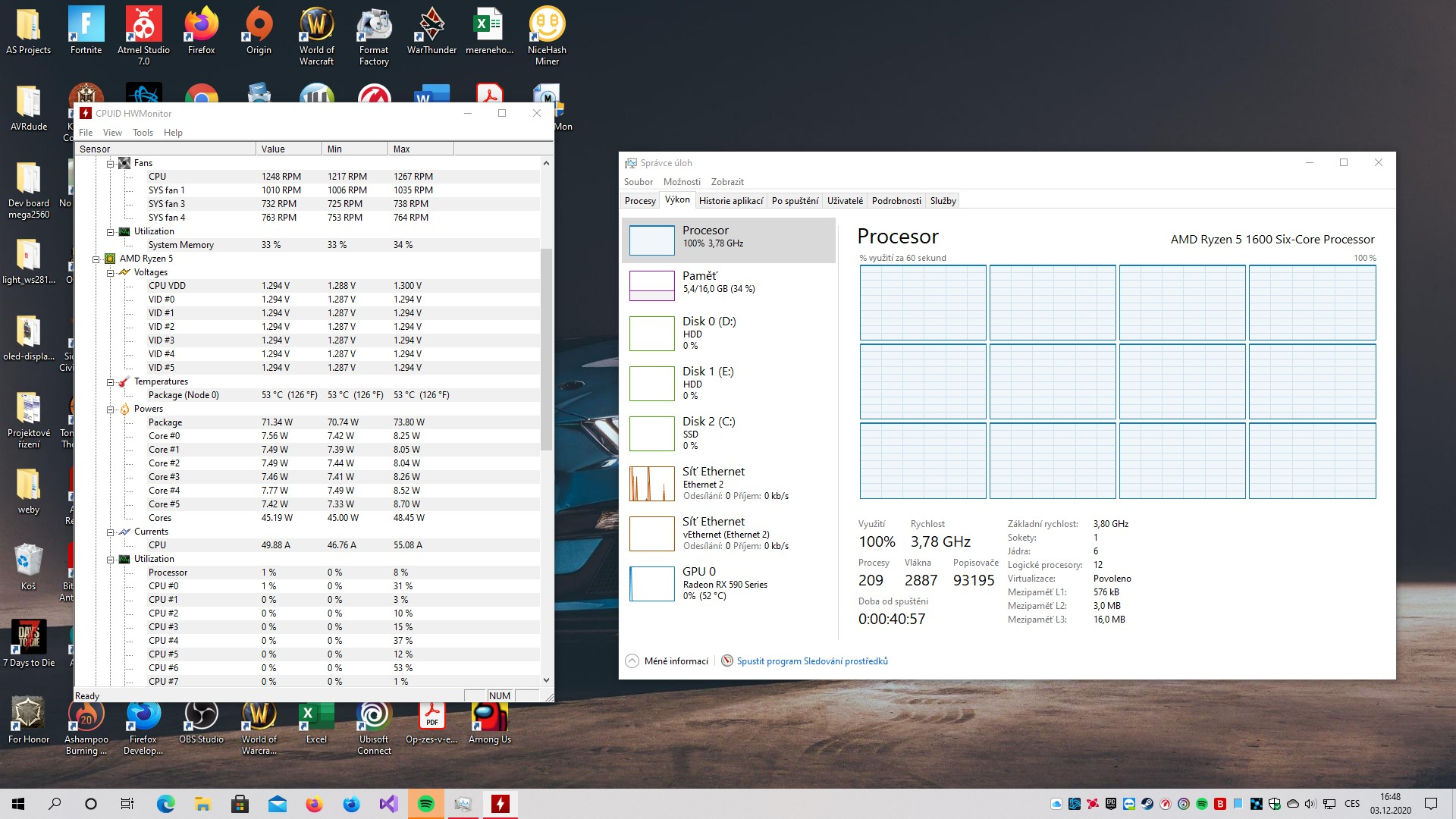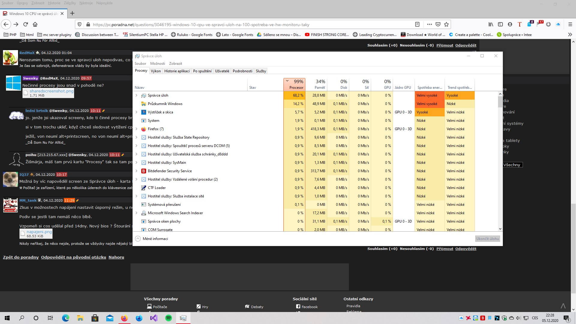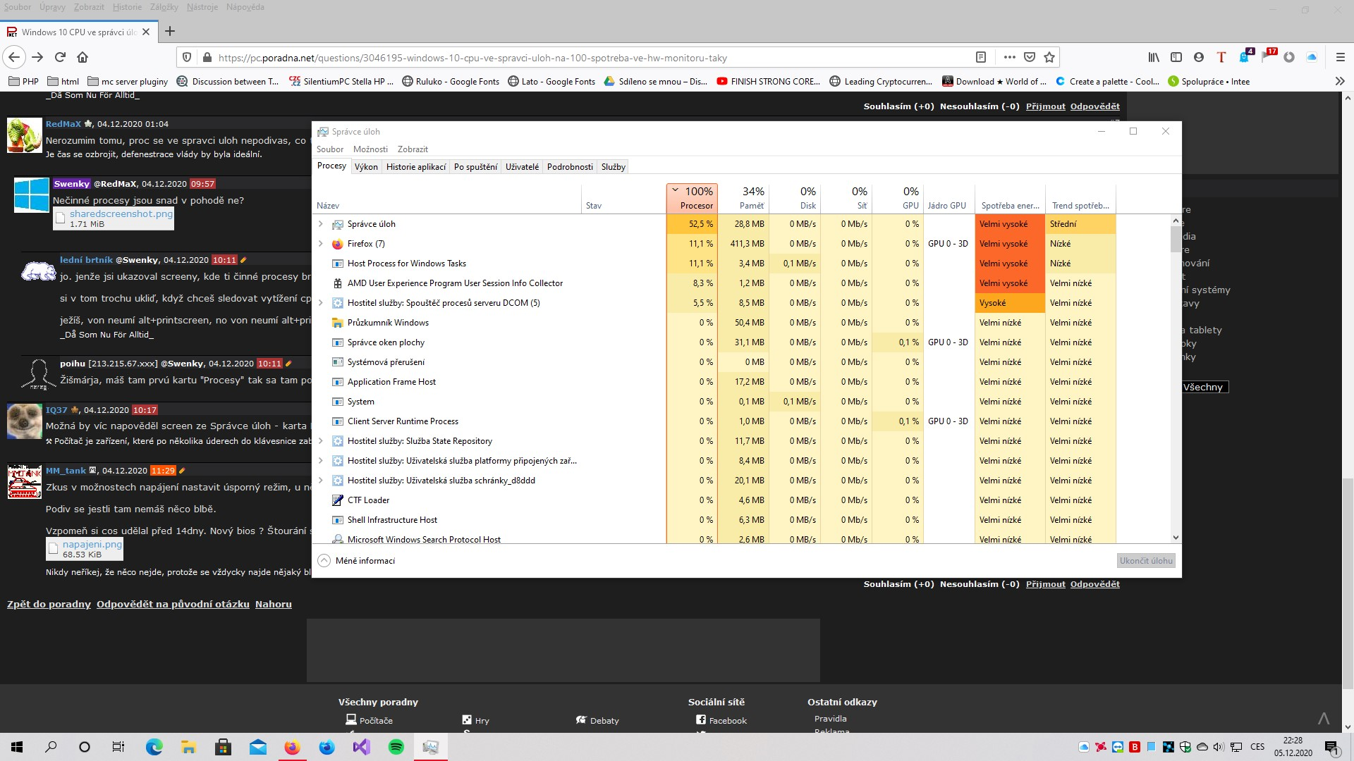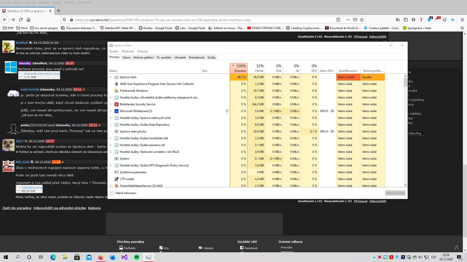 Windows 10 CPU ve správci úloh na 100%, spotřeba ve HW monitoru taky