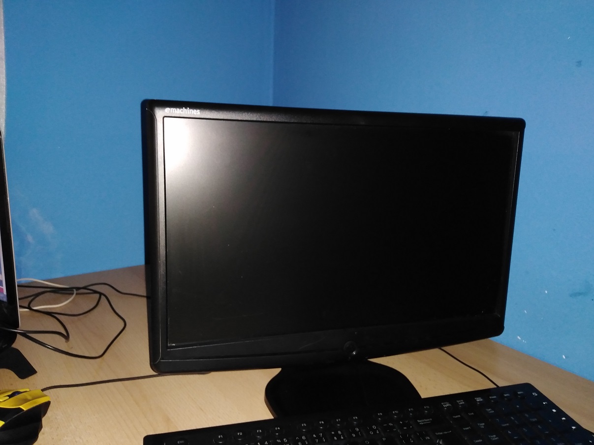 Monitor ( e-machines), grafická karta ( amd radeon ax3870 512mb ), počítač je skládaný ( ale tam chyba není s jinou grafikou to funguje parádně akorát ta nemá to přídavné napájení ), a kabel jeden vede z monitoru do přípojky z vga na hdmi a přímo do grafiky a to přídavné napájení je ze zdroje přímo do grafické karty