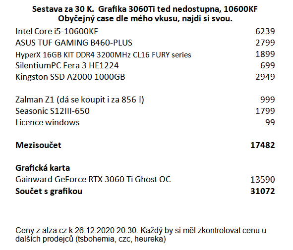 Jinak ty 3060 se průběžně objevují i na alza. Hodil jsem link kde byla cena. Možná verze bez OC v názvu bude o pár stovek levnější.