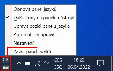 Tak jsem se k tomu po nějaké době zase vrátil. Především jsem zkusmo našel, jak se dostat k nastavení klávesnice. Pravým myšítkem jsem kliknul sem: