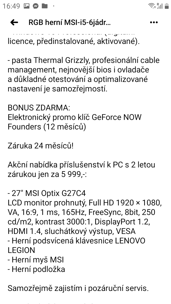 monitor ... aha není v ceně, je v přílepku za +6.000. 27" rozlišení jen fhd a prohnutý? proboha proč? dělá z tebe dylinu?