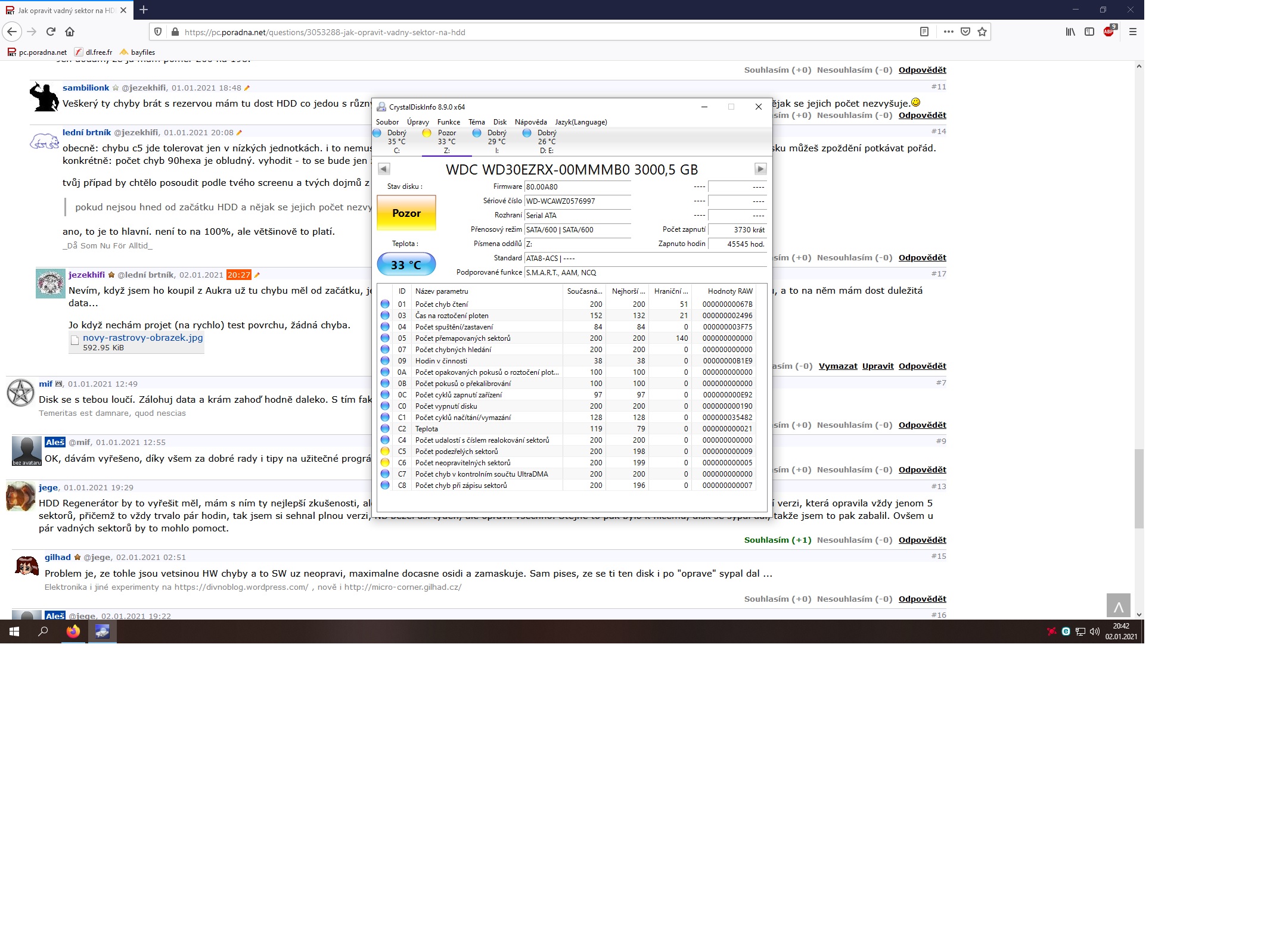 Nevím, když jsem ho koupil z Aukra už tu chybu měl od začátku, jen CrystalDiskInfo to ukazuje, HDTune nic. Takže si vyber, ale disk funguje bez problému, a to na něm mám dost duležitá data...