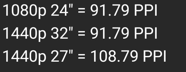 Co znamená tohle na foto znamená to, že když budu mít 32" qhd tak to nebude tak náročné na grafiku, jako 27" ale jako na 24" full hd?