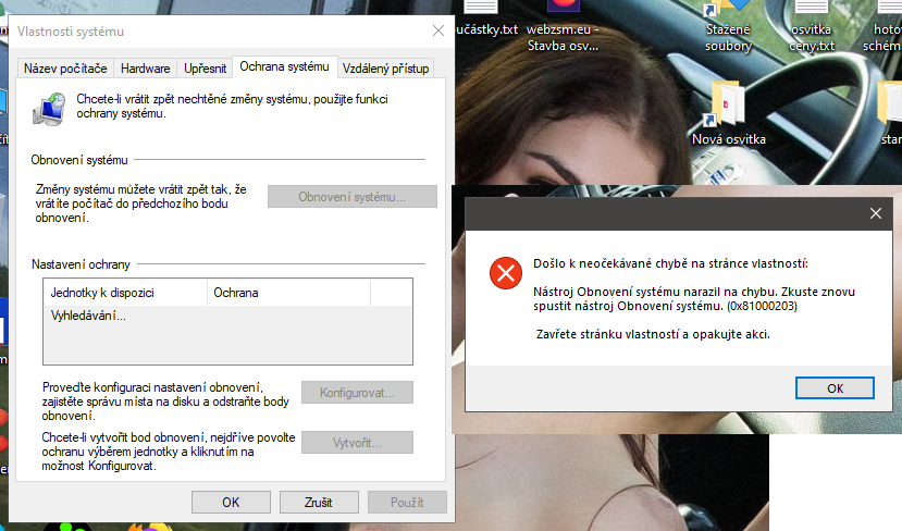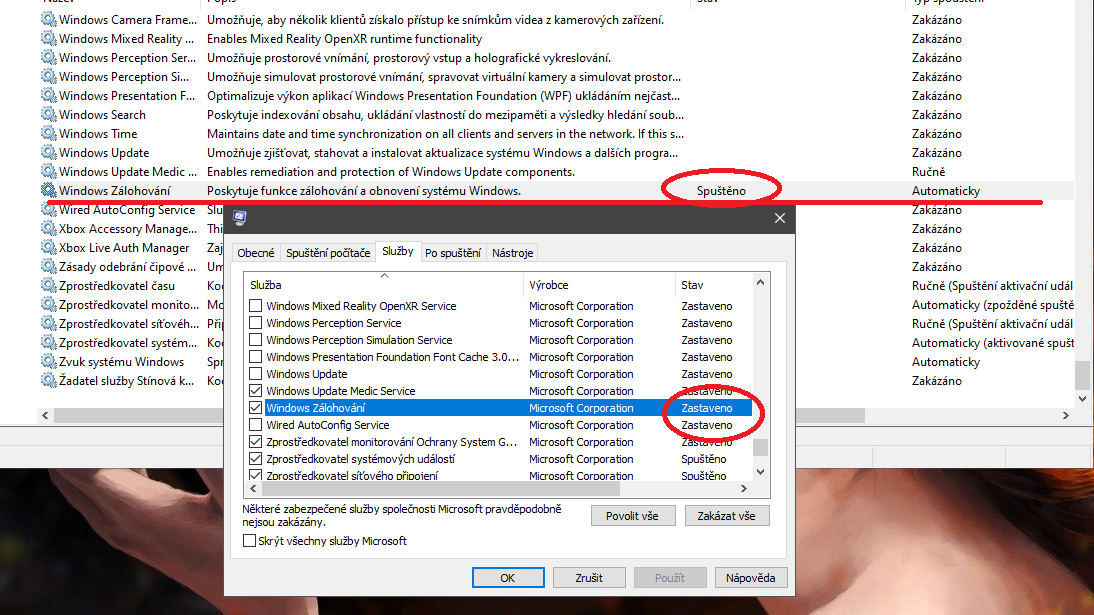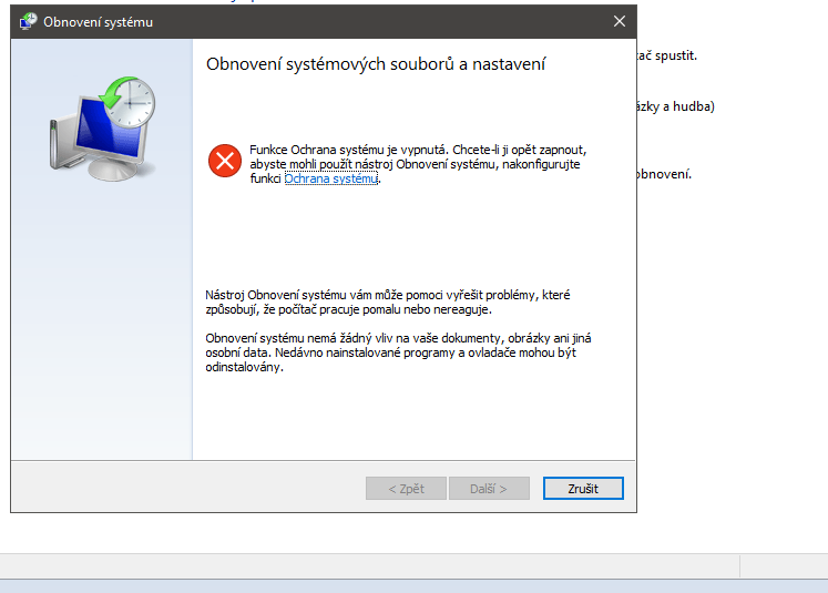 Je zakázaná ocharana systému, obnovení systému, windows zálohování, virtuální jednotky, před aktualizací to bylo spuštěné. Spustili se