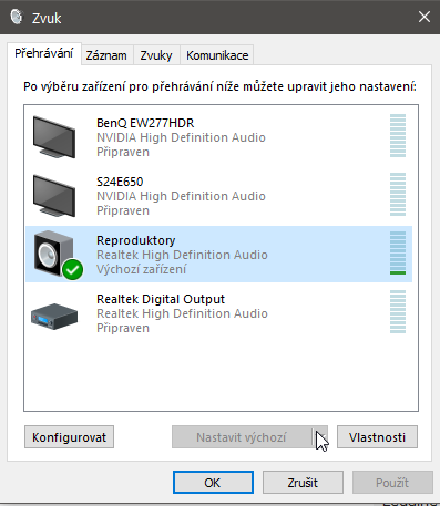 Realtek je jeho normalna zvukovka a Nvidia jeho zvukovka v grafike.