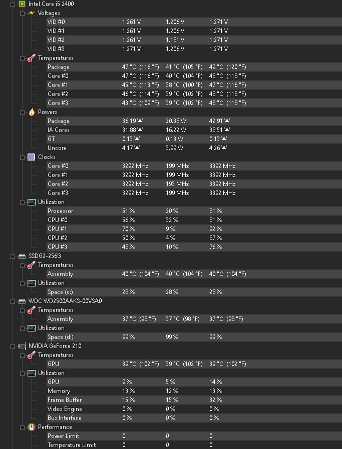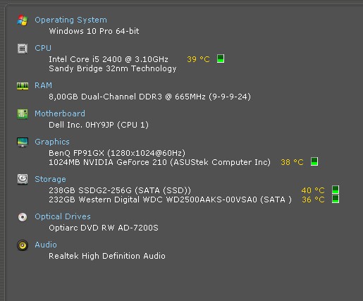 speccy: starý ale použitelný 4jádrový procesor, 8gb ram. celkem normální stroj, nepřehřívá se, bazar…