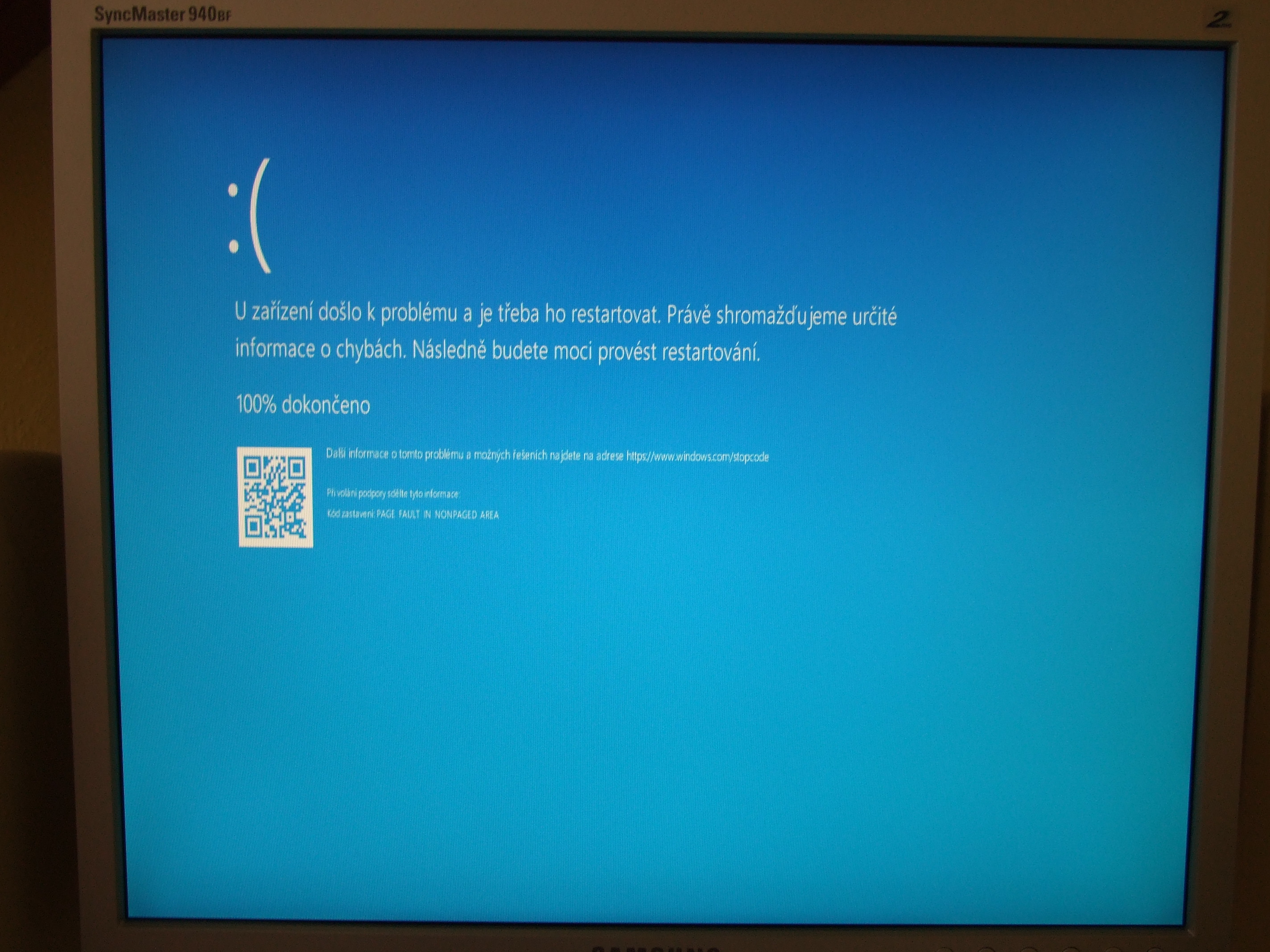 Po připojení k internetu začne windows stahovat aktualizace a následuje modrá obrazovka.