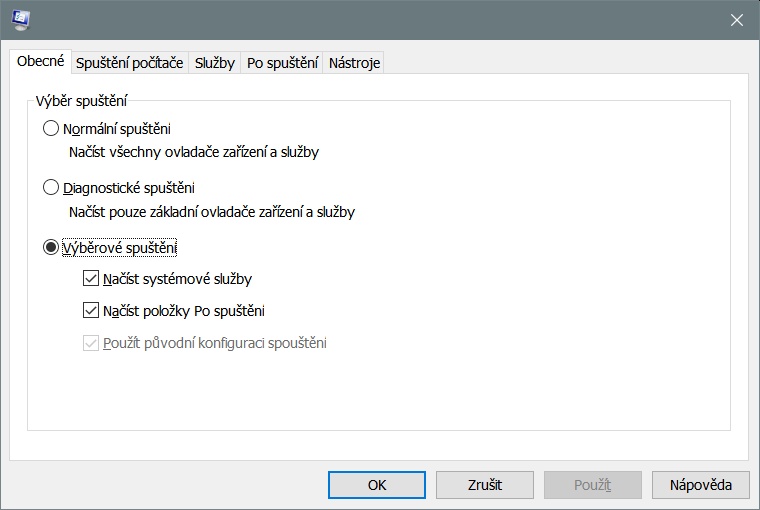 Msconfig sice nouzový režim zruší, ale pouze pomocí výběrového spuštění. T.j. nenačte všechny služby…