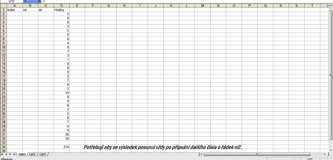 Dobrý den. Potřebuji aby při sčítání v Exelu vytvořit ,,nekonečný" sloupec. Myslím to tak že při sčítání se bude automaticky posouvat výsledek stále dolů. Jde to? Děkuji za odpověď.
