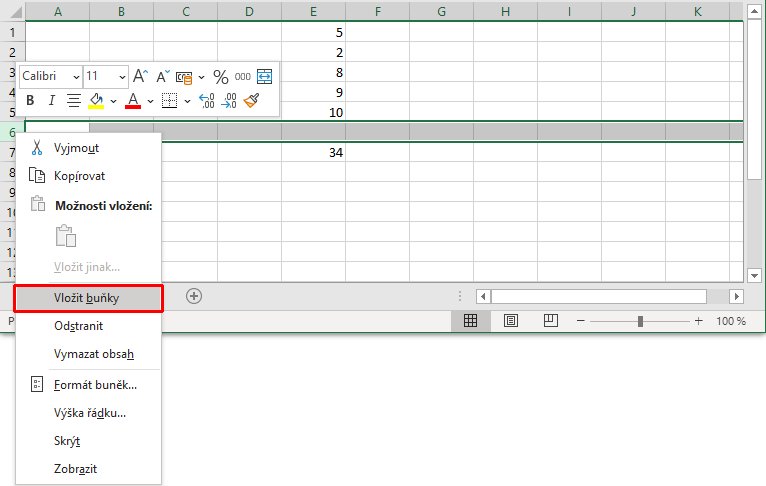 2. Klik pravým myšítkem a vybrat "Vložit buňky"