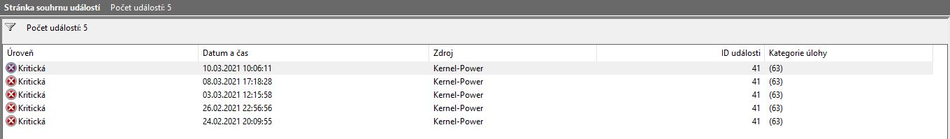 kernel power - chyba 41: no to vidíš okamžiky pádů. ale to víš sám že to spadlo, kvůli tomu tu píšeš…