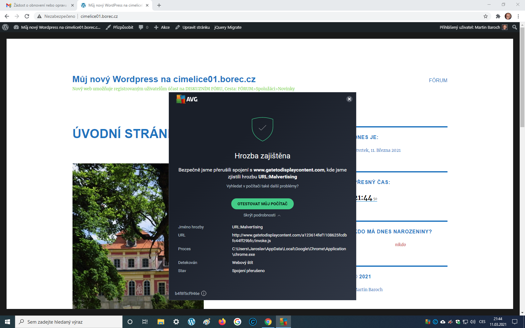 Na všech webech a stránkách v pc s OS Windows 10 se mi začalo zobrazovat okno s upozorněním na hrozbu. Projetí pc antivirem nepomáhá. Co s tím?