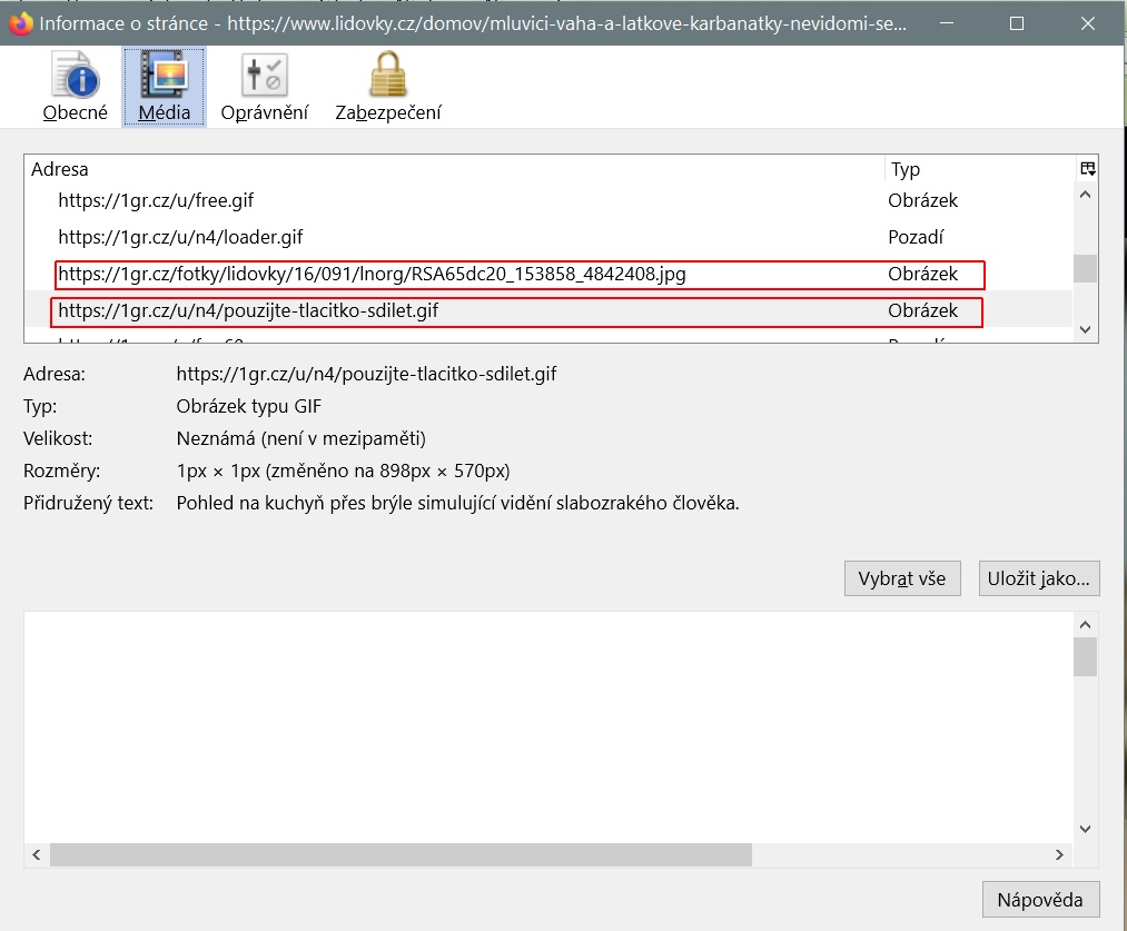 firefox -> informace o stránce -> média
