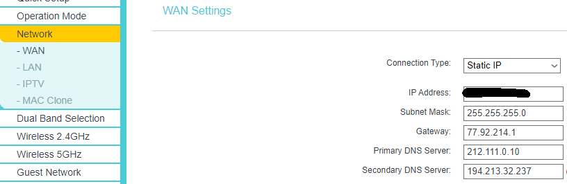 A sám provider uvádí v příručce, že v bytovém domě je nutné vždy nastavit statickou ip adresu, která je standartně veřejná.