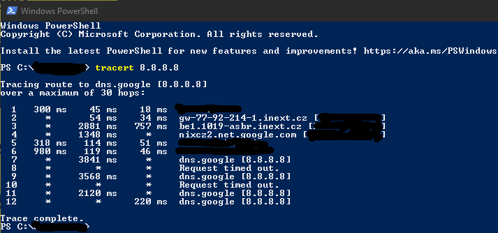 jestli ten vysoký ping bývá často, chce se podívat na výpis, kde to po cestě nastává:
