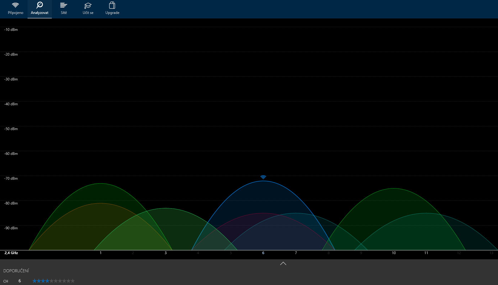 Co jsem inssider stáhnul, tak chtěl po mě účet. Ale už dříve jsem stáhl Wifi Analyzer z Windows Store. Právě on mi řekl, že nejvhodnější je kanál 6. A je to pouze hrubý náčrtek, mezery jsou dveře.