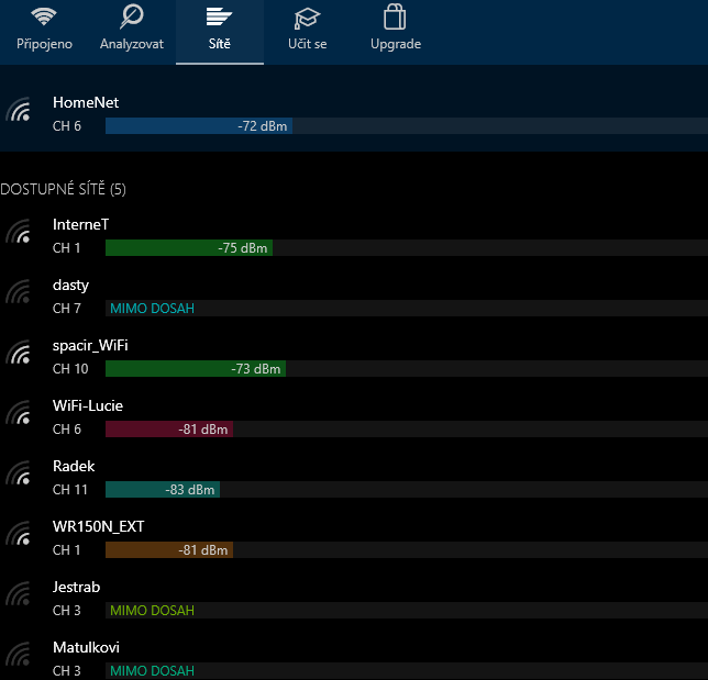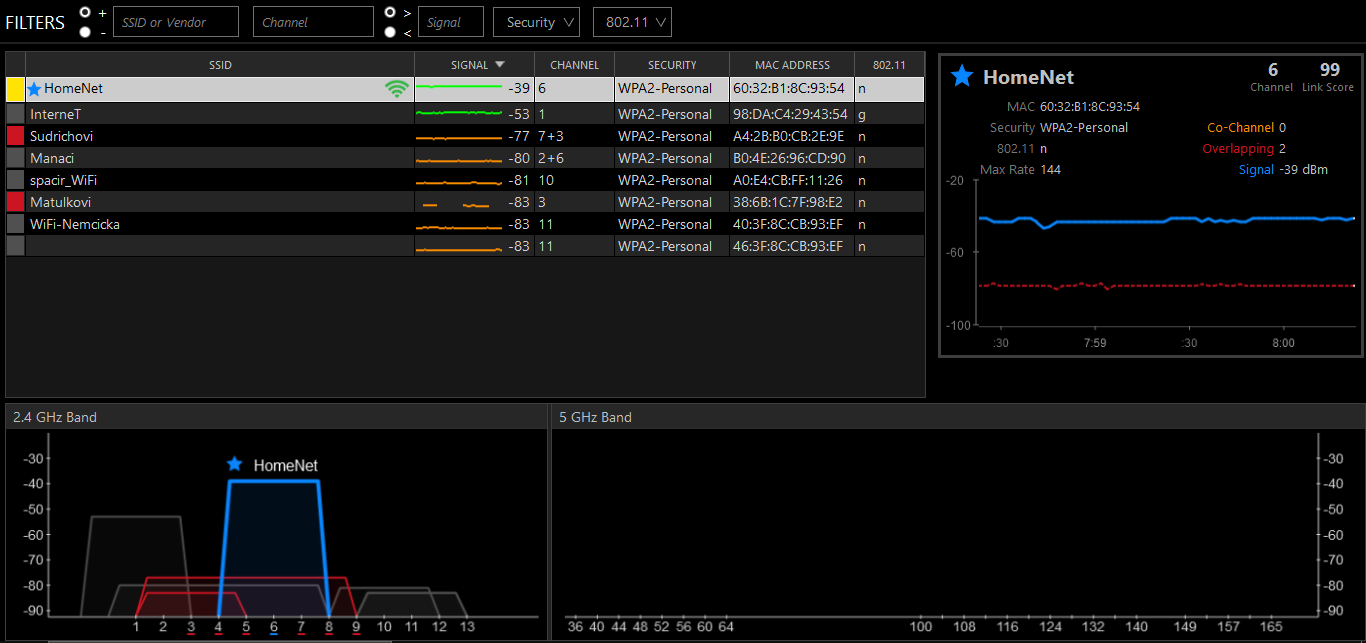 nový screen s inssiderem je předpokládám někde od pc2, protože s takovým signálem není žádný problém, vlastní signál silný, sousedi odstup 40db, co víc by člověk chtěl.