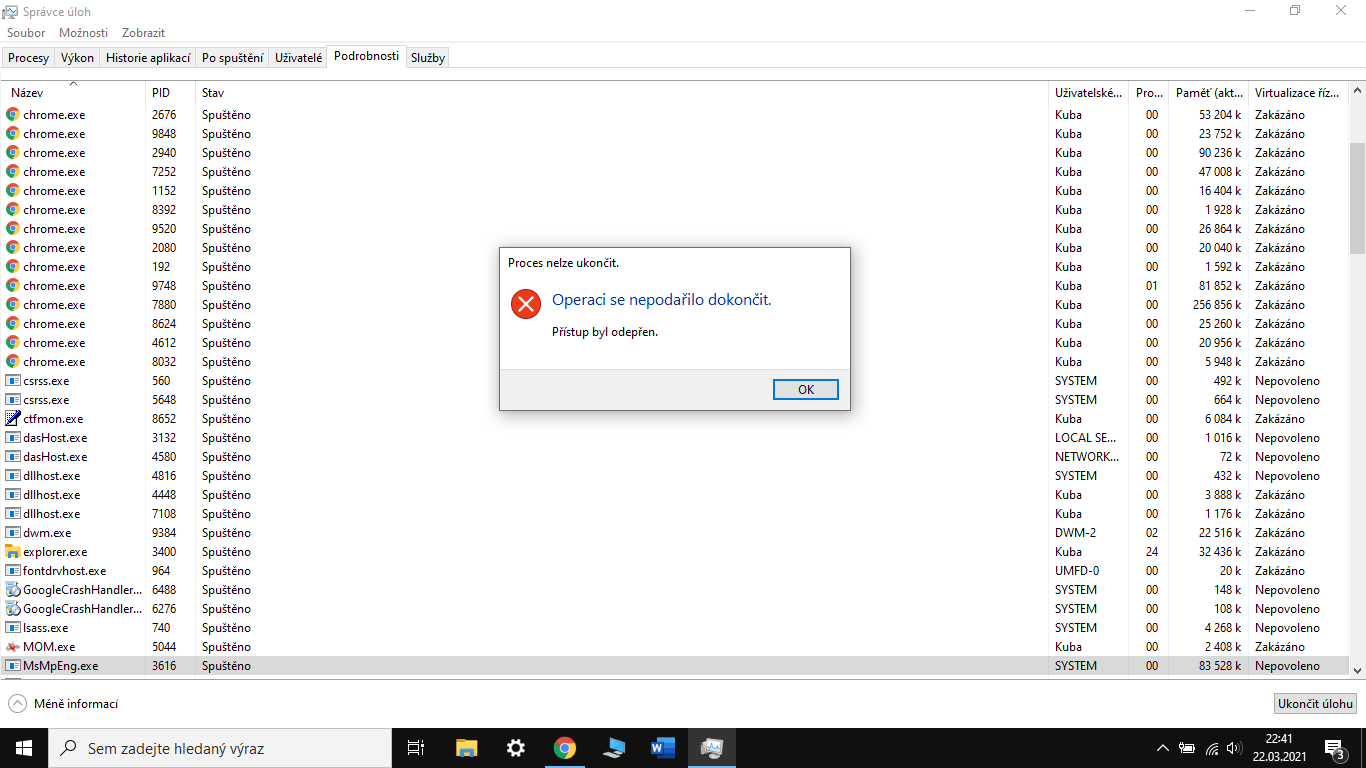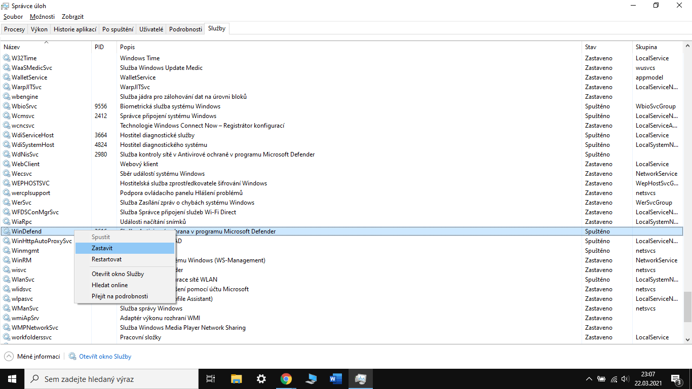 Zkoušel jsem ale, jak píšeš a když kliknu pravým na defender a chci ho zastavit, tak to vyhazuje stejnou hlášku, jako jsem postoval výše, tedy přístup byl odepřen. Dával jsem i restartovat, ale prostě ne a ne.